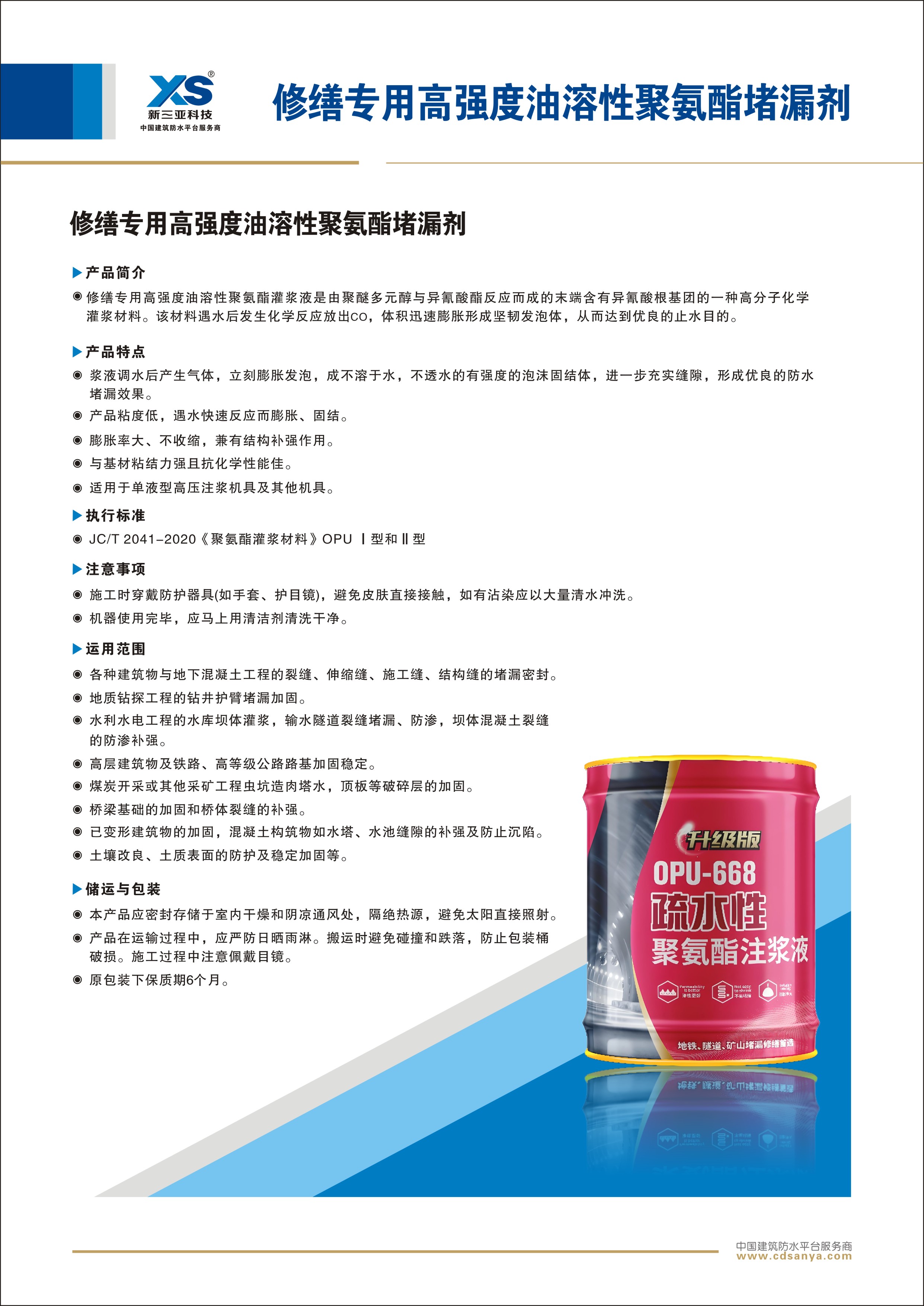 高強(qiáng)度油溶性聚氨酯堵漏劑(Ⅰ型 疏水性)